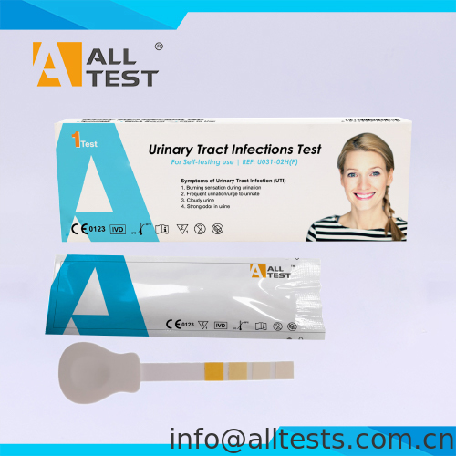 मूत्र पथ संक्रमण परीक्षण (मूत्र) दृढ़ प्लास्टिक की पट्टियाँ हैं जिन पर कई अलग-अलग अभिकर्मक क्षेत्र लगाए जाते हैं। परीक्षण मूत्र में निम्नलिखित विश्लेषकों का गुणात्मक पता लगाने के लिए है: ल्यूकोसाइट्स, रक्त, नाइट्राइट और प्रोटीन। मूत्र पथ संक्रमण परीक्षण (मूत्र) स्व-परीक्षण में एकल उपयोग के लिए है।