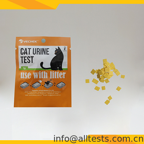 3. बिल्ली के पेशाब करने के बाद, 5 मिनट प्रतीक्षा करें, बिल्ली के कूड़े पर पेशाब वाले गीले क्षेत्र के रंग में बदलाव देखें।