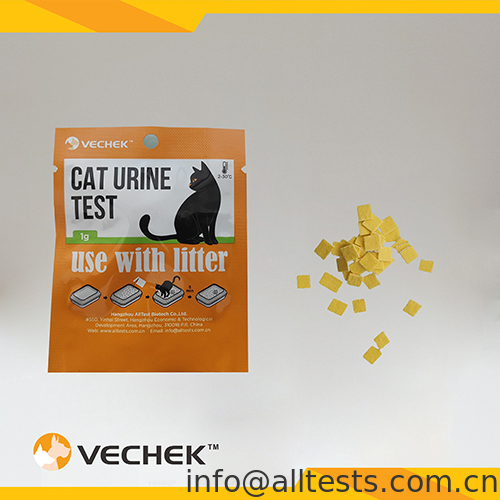 3. बिल्ली के पेशाब करने के बाद, 5 मिनट प्रतीक्षा करें, कैट लिटर पर पेशाब वाले गीले क्षेत्र के रंग परिवर्तन का निरीक्षण करें।
