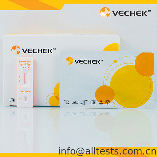 साल्मोनेला टाइफी एंटीजन रैपिड टेस्ट कैसेट (मल) जानवरों के मल के नमूनों में साल्मोनेला टाइफी का पता लगाने के लिए सैंडविच लेटरल फ्लो इम्यूनोक्रोमैटोग्राफिक एसे पर आधारित एक गुणात्मक है। इस परीक्षण में, झिल्ली को परीक्षण पट्टी के परीक्षण रेखा क्षेत्र पर एंटी-साल्मोनेला टाइफी एंटीबॉडी के साथ पहले से लेपित किया जाता है। परीक्षण के दौरान, नमूना एंटी-साल्मोनेला टाइफी एंटीबॉडी के साथ लेपित कण के साथ प्रतिक्रिया करता है। मिश्रण केशिका क्रिया द्वारा झिल्ली पर क्रोमैटोग्राफिक रूप से ऊपर की ओर पलायन करता है ताकि झिल्ली पर एंटी-साल्मोनेला टाइफी एंटीबॉडी के साथ प्रतिक्रिया हो सके और परीक्षण रेखा क्षेत्र में एक रंगीन रेखा उत्पन्न हो सके। परीक्षण क्षेत्र में इस रंगीन रेखा की उपस्थिति एक सकारात्मक परिणाम को इंगित करती है, जबकि इसकी अनुपस्थिति एक नकारात्मक परिणाम को इंगित करती है। एक प्रक्रियात्मक नियंत्रण के रूप में कार्य करने के लिए, नियंत्रण रेखा क्षेत्र में हमेशा एक रंगीन रेखा दिखाई देगी जो यह दर्शाती है कि नमूने की उचित मात्रा मिलाई गई है और झिल्ली की बत्ती हो गई है।