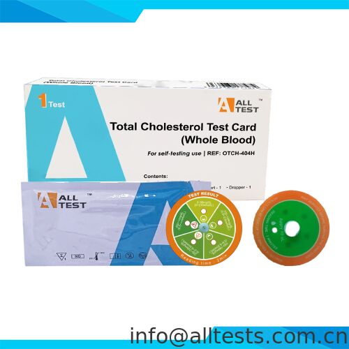 कुल कोलेस्ट्रॉल परीक्षण कार्ड मानव उंगली के छिद्र रक्त में कुल कोलेस्ट्रॉल के अर्ध मात्रात्मक निर्धारण के लिए इन विट्रो नैदानिक उपयोग के लिए है। यह स्व-परीक्षण के लिए उपयुक्त है।